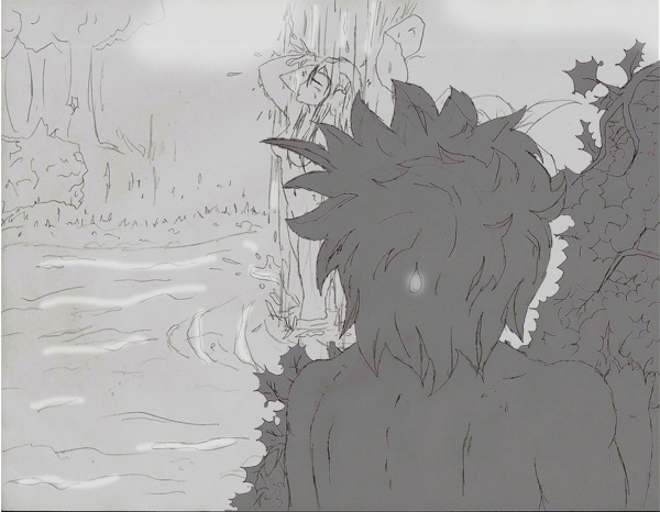 Lily suivit un petit ruisseau, puis atteignit une plus grosse rivière, où coulait une petite chute. Elle décida qu'il était temps d'aller se laver un peu; elle était toute crasseuse. Elle détacha les fleurs dans ses cheveux, puis se débarrassa de ses bracelets en lianes. Elle se dévêtit entièrement, laissant tomber son linge fait de feuilles par terre. Elle fit entrer la plante d'un de ses pieds dans l'eau. C'était froid. C'était bien. Au moment où elle y trempa son deuxième pied, elle toucha son cristal. Quelque chose lui disait qu'Il était temps de l'enlever, une force qui allait au-delà de sa compréhension. Elle se dit que, pour une seule fois, ce n'était pas bien grave, et elle l'enleva.